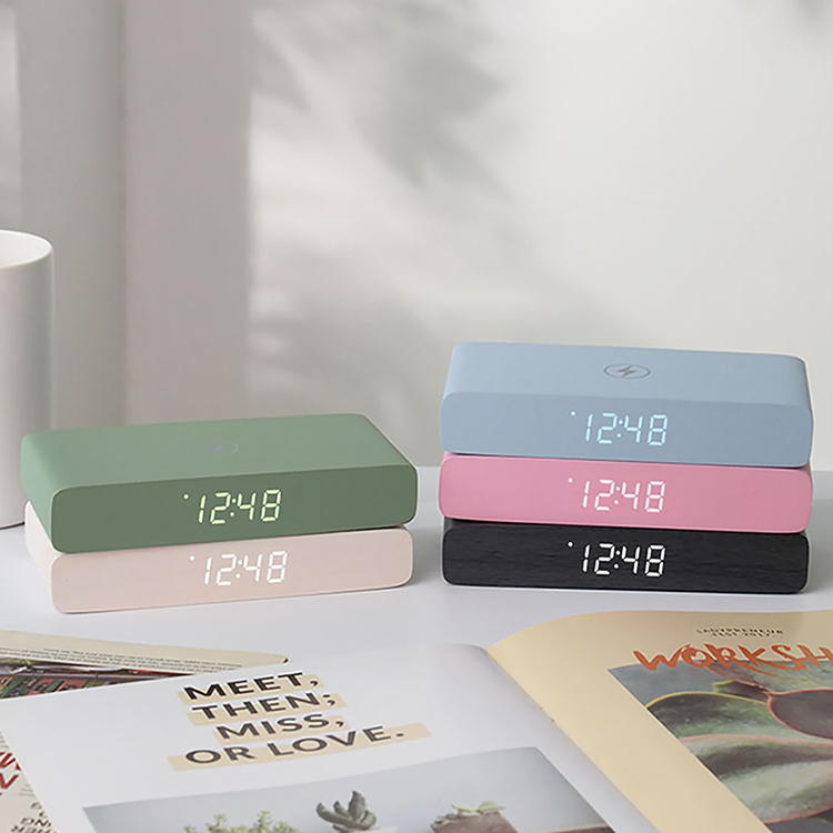 [웰세스] W101 슬림무선충전시계 탁상 LED시계 스마트폰 충전 시계