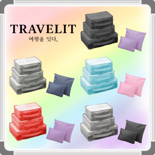 [트래블잇] 내맘대로 8컬러 믹스 여행용파우치 5종세트 캐리어정리 실속구성5P