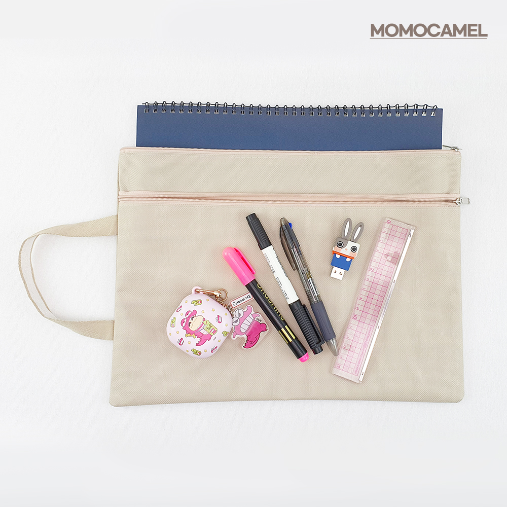 [모모카멜] 서류파우치 파일주머니 A4 학원 보조가방 (34*25cm)