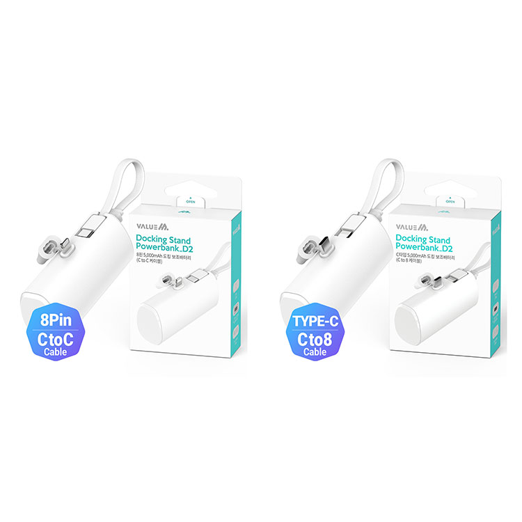 [밸류엠] 2WAY 케이블 일체형 도킹 보조배터리 5000mAh D2