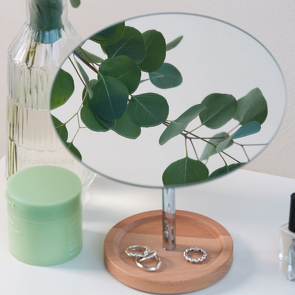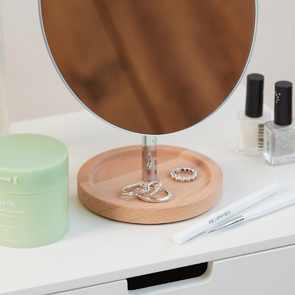 비치우드 수납 큰원형 탁상거울