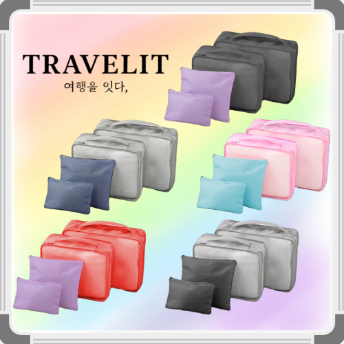 [트래블잇] 내맘대로 8컬러 믹스 여행용파우치 4종세트 캐리어정리 실속구성 4P